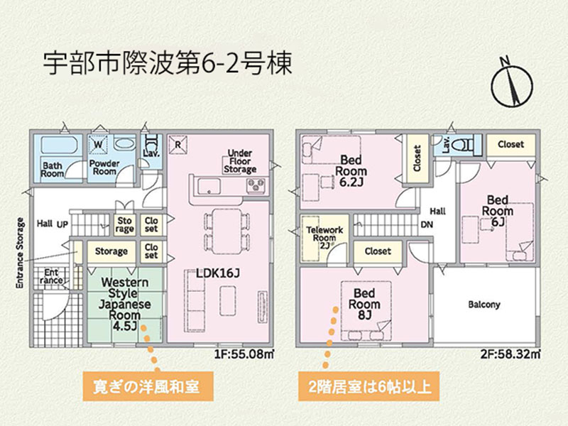 和室4.5畳 1階 1室 洋室6畳 2階 1室 洋室6.2畳 2階 1室 洋室8畳 2階 1室 LDK16畳 1階 1室 |