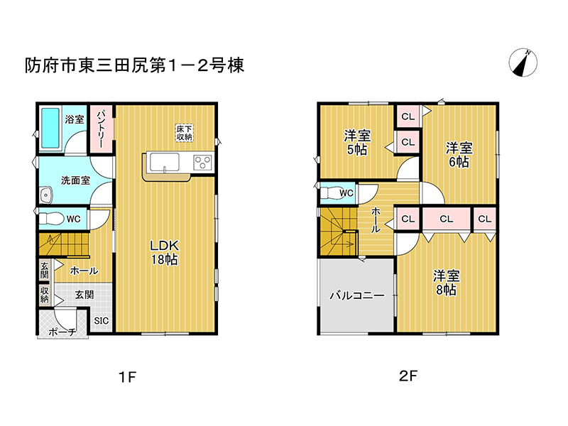 間取内容 洋室5畳 2階 1室  洋室6畳 2階 1室  洋室8畳 2階 1室  LDK18畳 1階 1室
