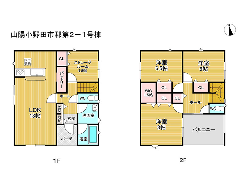 洋室6畳 2階 1室 洋室6.5畳 2階 1室 洋室8畳 2階 1室 LDK18畳 1階 1室 S4.5畳 1階 1室 |