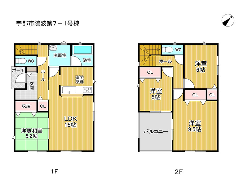和室5.2畳 1階 1室 洋室5畳 2階 1室 洋室6畳 2階 1室 洋室9.5畳 2階 1室 LDK15畳 1階 1室 |
