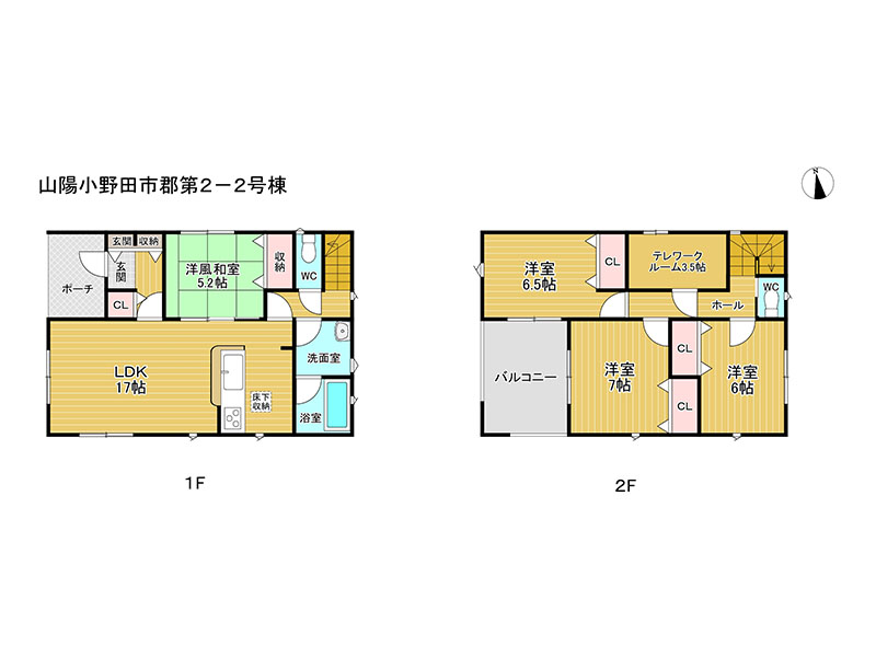 和室5.2畳 1階 1室 洋室6畳 2階 1室 洋室6.5畳 2階 1室 洋室7畳 2階 1室 LDK17畳 1階 1室 +テレワークルーム |
