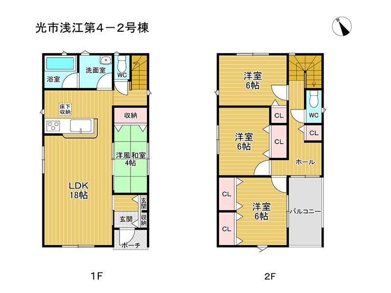 和室4畳 1階 1室 洋室6畳 2階 3室 LDK18畳 1階 1室 |