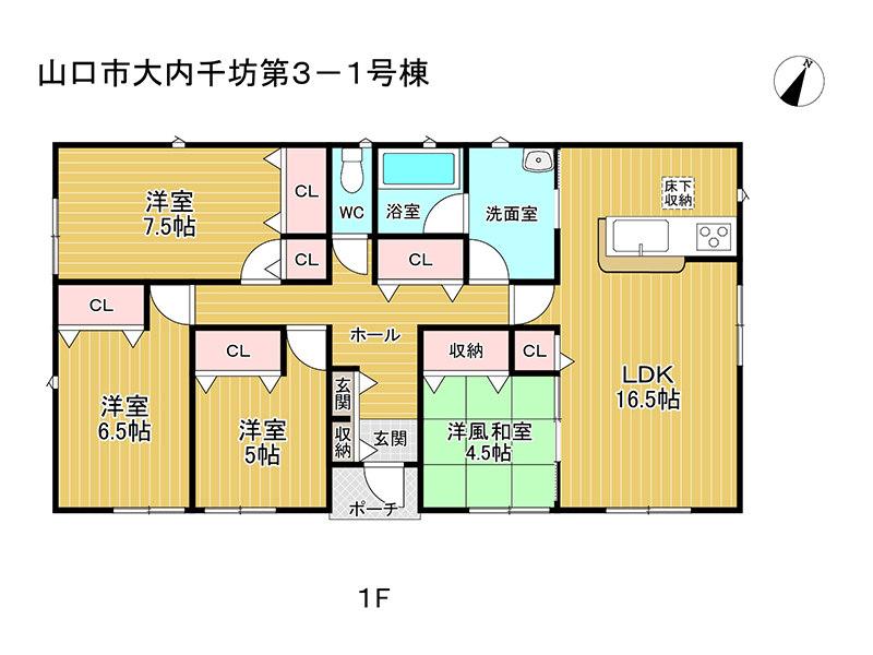和室4.5畳 1階 1室 洋室5畳 1階 1室 洋室6.5畳 1階 1室 洋室7.5畳 1階 1室 LDK16.5畳 1階 1室 |