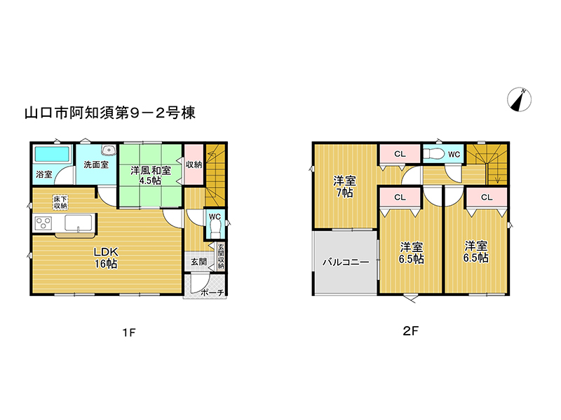 間取内容 和室4.5畳 1階 1室  洋室6.5畳 2階 2室  洋室7畳 2階 1室  LDK16畳 1階 1室