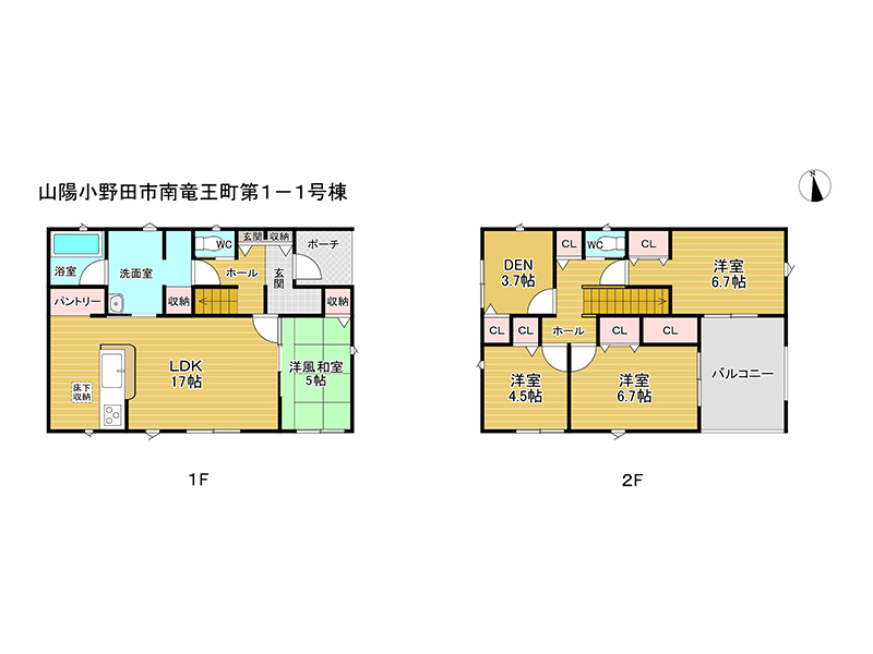 和室5畳 1階 1室 洋室4.5畳 2階 1室 洋室6.7畳 2階 2室 LDK17畳 1階 1室 S3.7畳 2階 1室 |