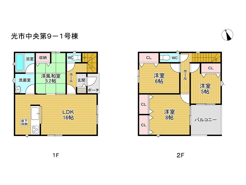 和室5.2畳 1階 1室 洋室5畳 2階 1室 洋室6畳 2階 1室 洋室8畳 2階 1室 LDK16畳 1階 1室 |