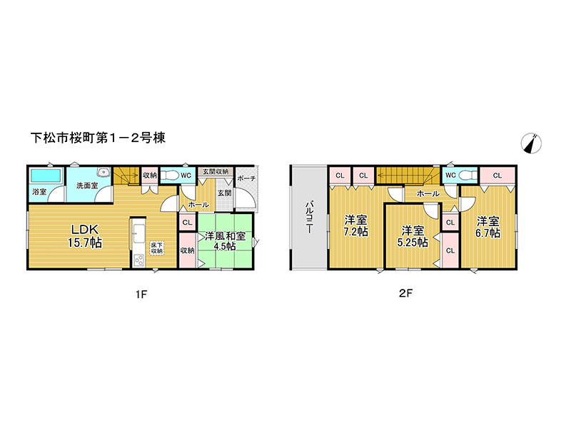 和室4.5畳 1階 1室 洋室5.25畳 2階 1室 洋室6.7畳 2階 1室 洋室7.2畳 2階 1室 LDK15.7畳 1階 1室 |