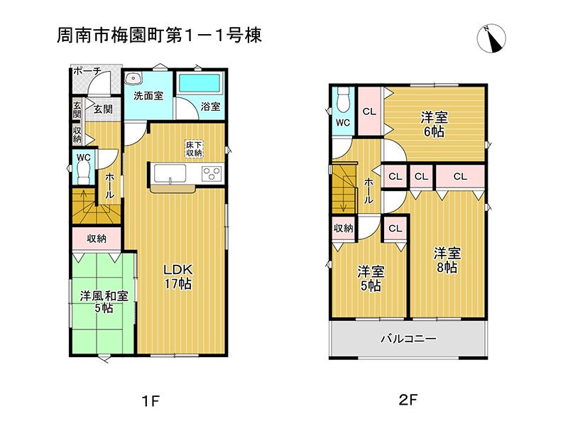 和室5畳 1階 1室 洋室5畳 2階 1室 洋室6畳 2階 1室 洋室8畳 2階 1室 LDK17畳 1階 1室 |